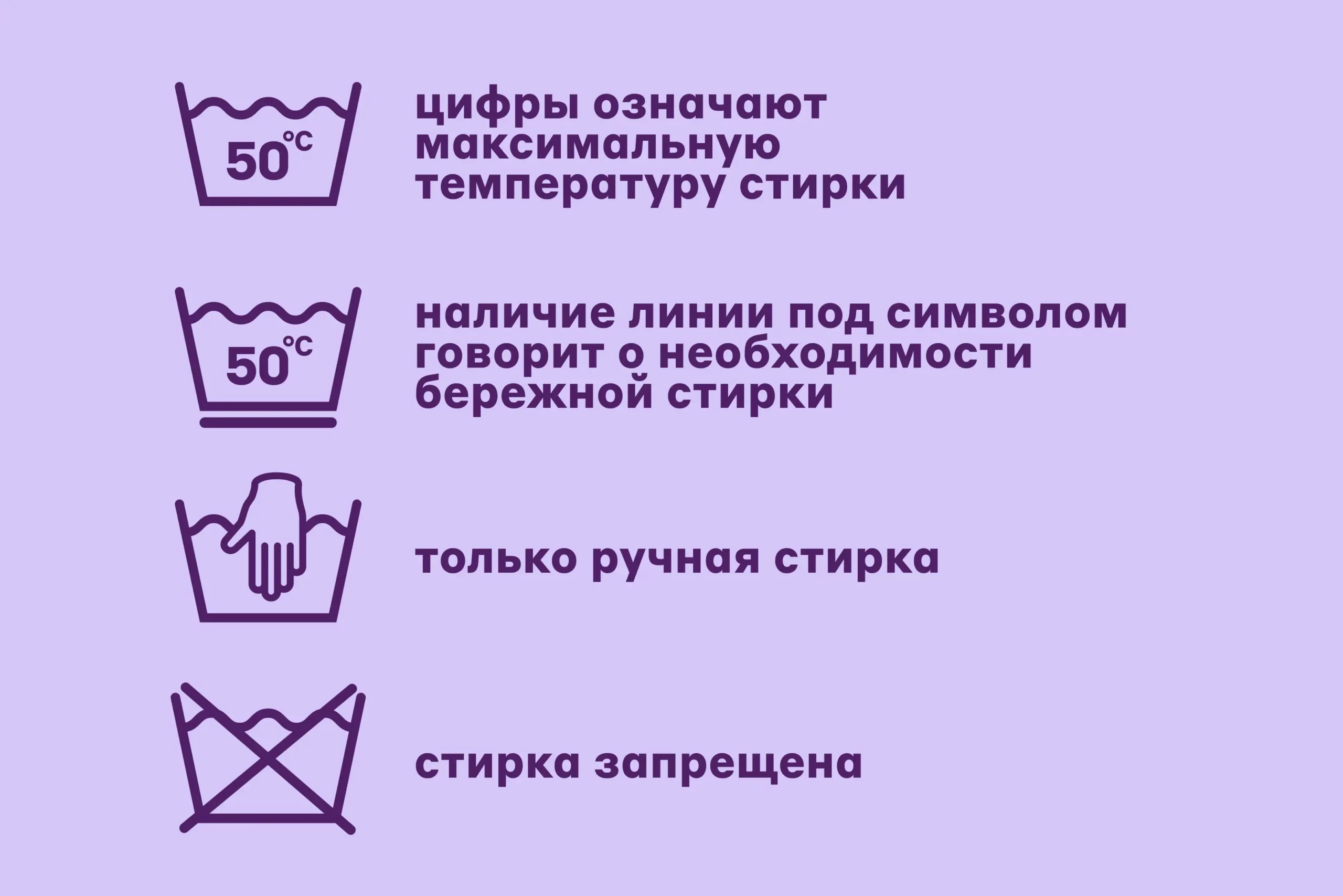 Основные обозначения и их расшифровку мы собрали в таблице. Также найти расшифровку любого символа можно в интернете. А иногда особенно заботливые производители сами расшифровывают обозначения, указывая инструкцию по уходу не только на английском, но и на русском языке.
