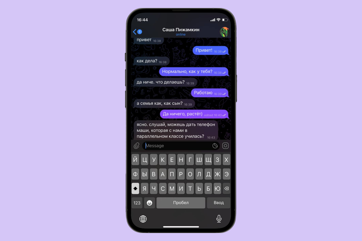 Если вы не находитесь с человеком в близких отношениях и хотите написать ему исключительно по делу — например, чтобы узнать чей-то номер или пригласить на мероприятие, — лучше обойтись без формальных вопросов о том, как дела, семья, работа, настроение, и сразу перейти к делу. Спрашивать что-то личное стоит лишь в том случае, если вы хорошо знакомы и интересуетесь жизнью друг друга, иначе такие вопросы создадут ощущение неловкости.