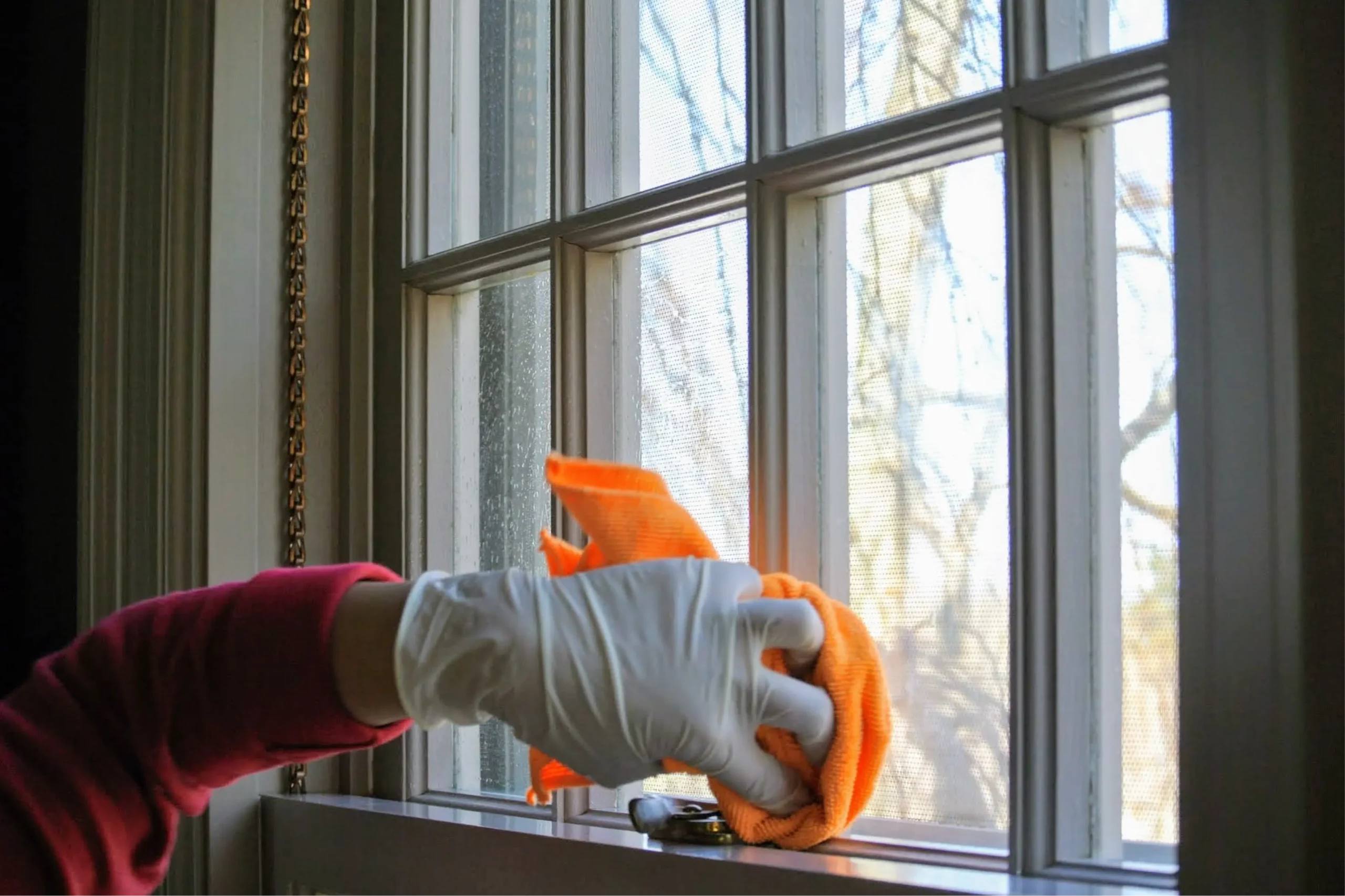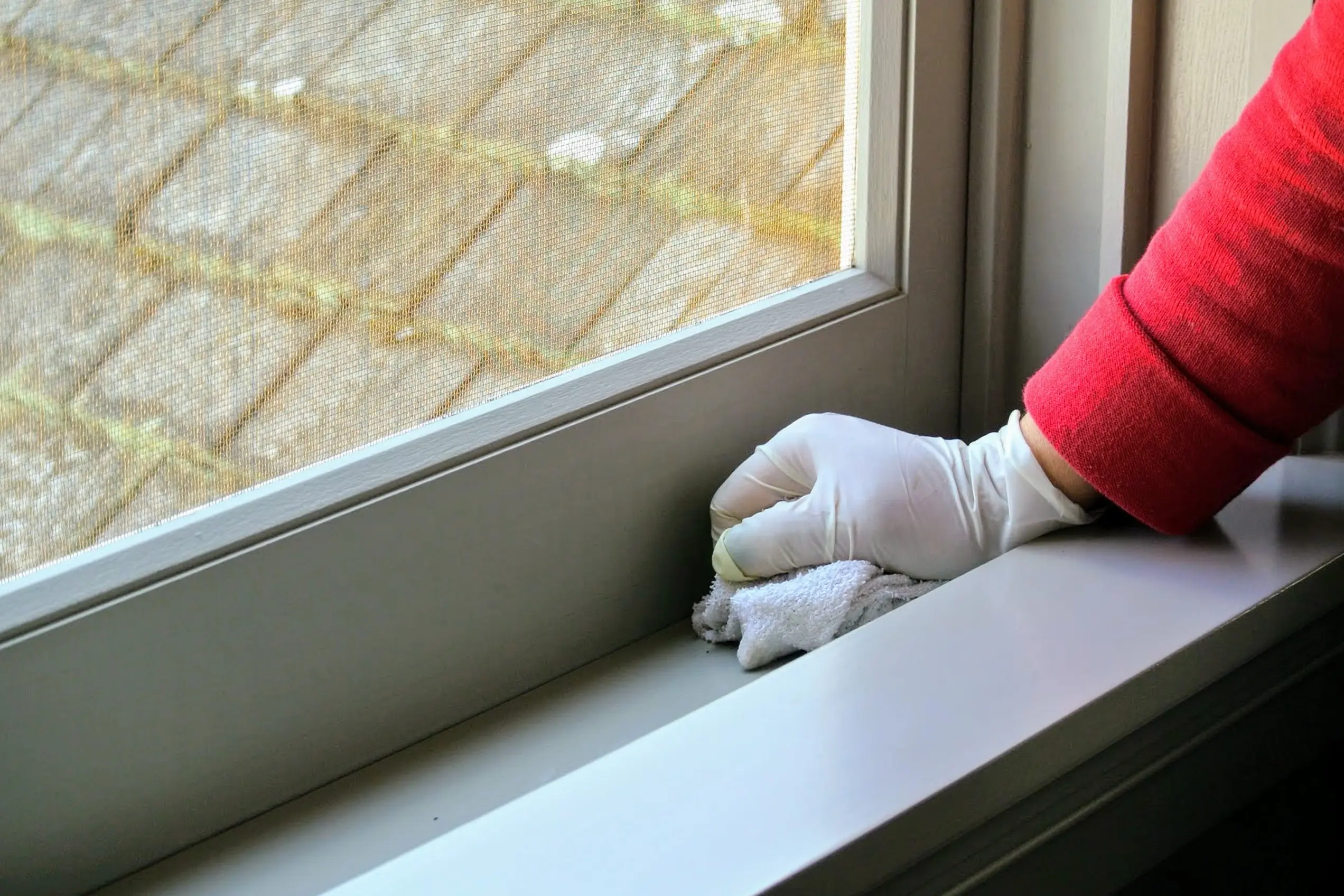 2. Начните с рам. Протрите их влажной тряпкой — не забудьте об углах и стыках. Если на рамах есть пыль или песок, грязь быстро попадет на чистое стекло.