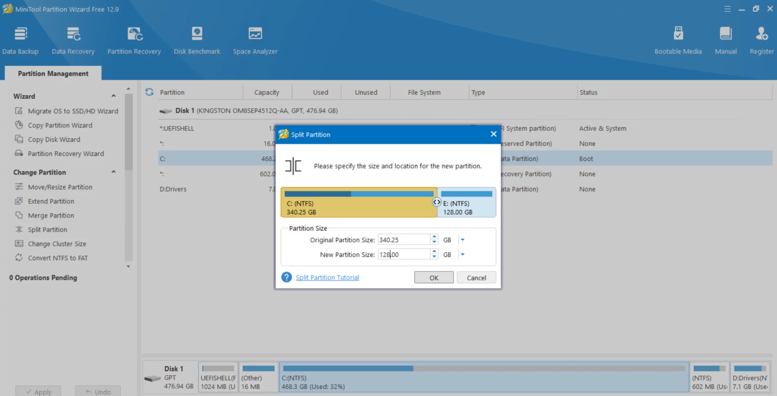 Делим диск при помощи Minitool Partition Wizard Free