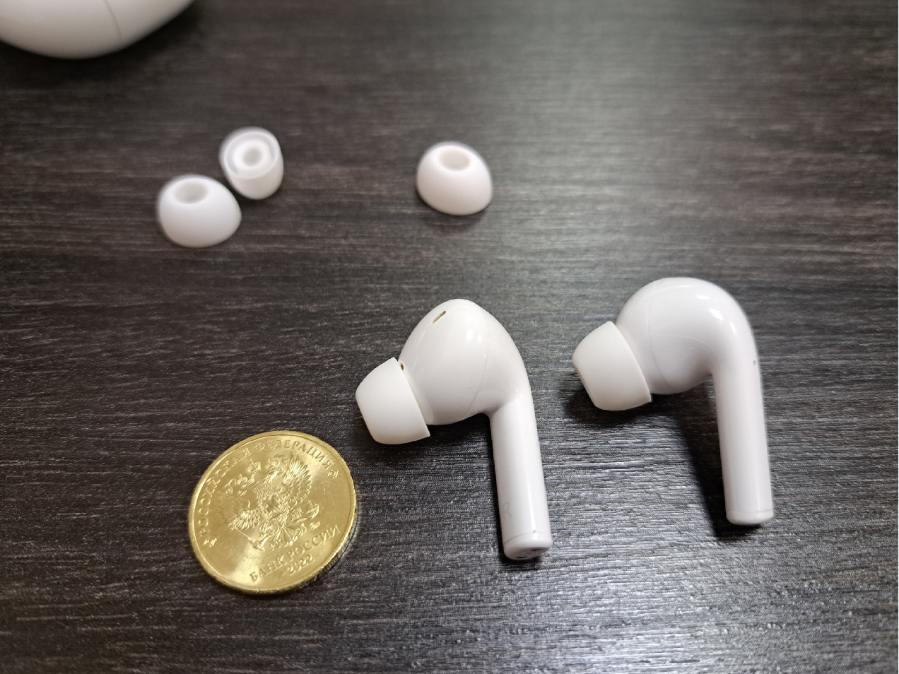 Начнем по порядку! Коробочка компактная, открыть непросто — не за что зацепиться, один раз через это придется пройти. Необходимую информацию прочитал на странице товара, инструкцию не открывал. Сменные амбушюры не понадобились, средние вполне подошли, при том, что у меня достаточно узкие ушные каналы, вполне удобно. Со временем амбушюры даже приняли постоянную немного уплощенную форму по форме канала. Пассивная шумоизоляция достаточна, чтобы комфортно слушать музыку и аудиокниги, и в то же время не обращать внимание на внешний шум. Обращаю внимание, что разговаривать и ориентироваться на улице в наушниках достаточно комфортно. Кабель зарядки не использовал, пользуюсь тем же, что и заряжаю смартфон, и думаю, что пользоваться коротеньким комплектным проводочком не очень удобно.
