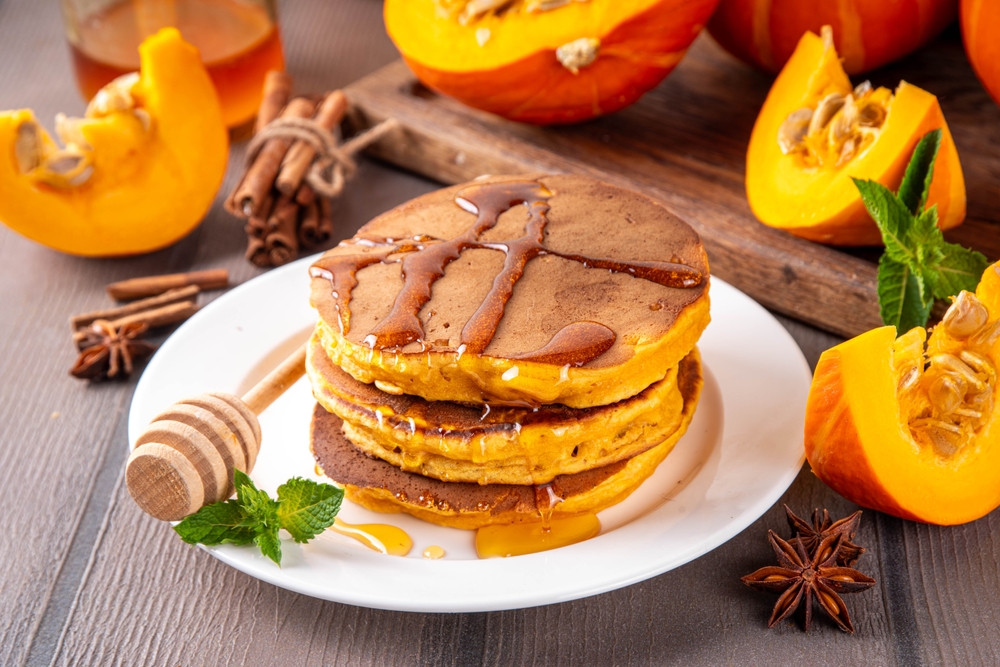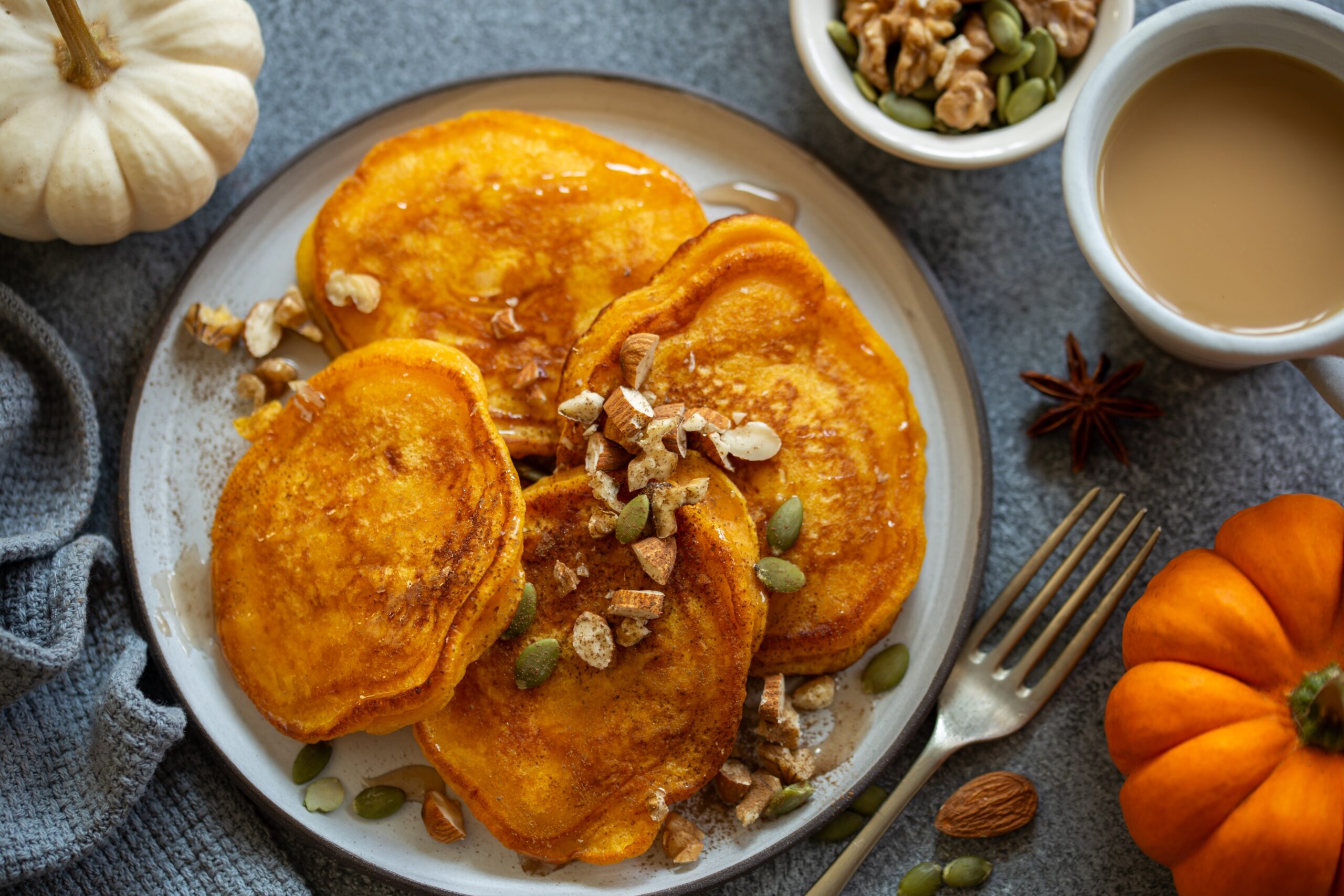 Совет: подавайте панкейки с медом или грецким орехом, чтобы подчеркнуть сладость тыквы.