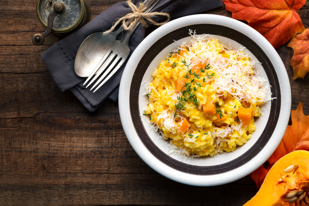 Это одно из моих любимых блюд. Оно получается сливочным, нежным и как-то по-осеннему уютным. А еще я люблю экспериментировать с подачей — такое ризотто можно подать прямо в половинке запеченной тыквы.