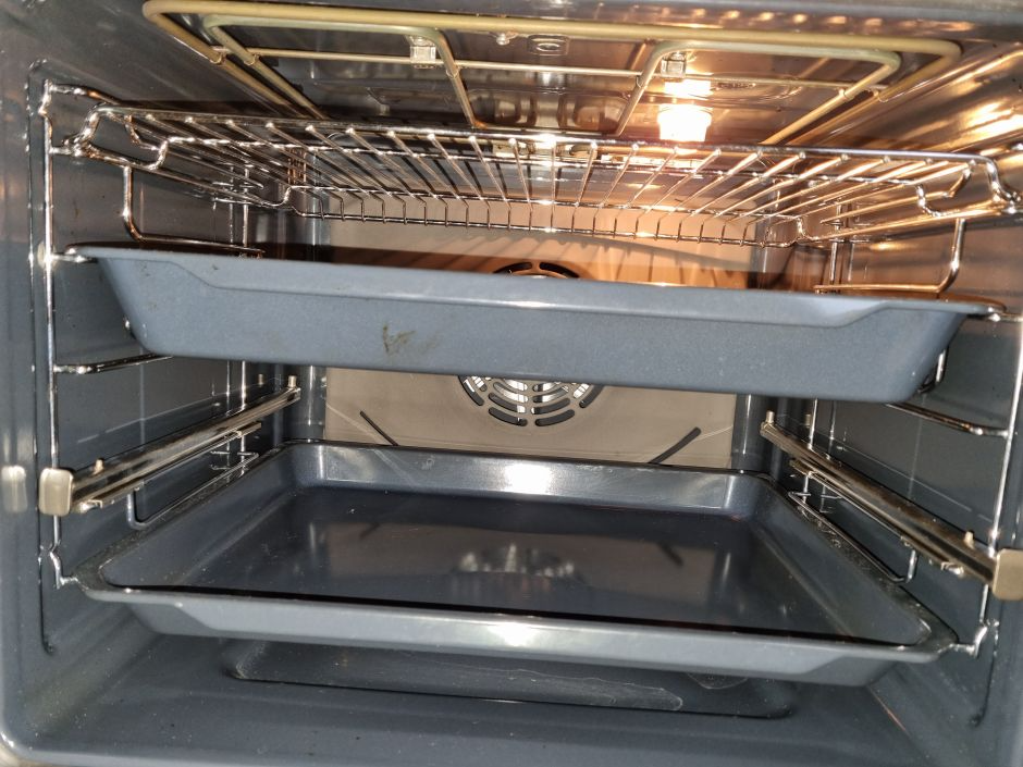 Из немногочисленных недостатков отмечу неутапливаемые механические ручки регулировки температуры и переключения режимов работы. Ещё следует учесть, что без использования конвекции фактическая температура в духовке может быть выше заданного значения, чего уже не наблюдается с включенным вентилятором, равномерно распределяющим воздух внутри камеры.