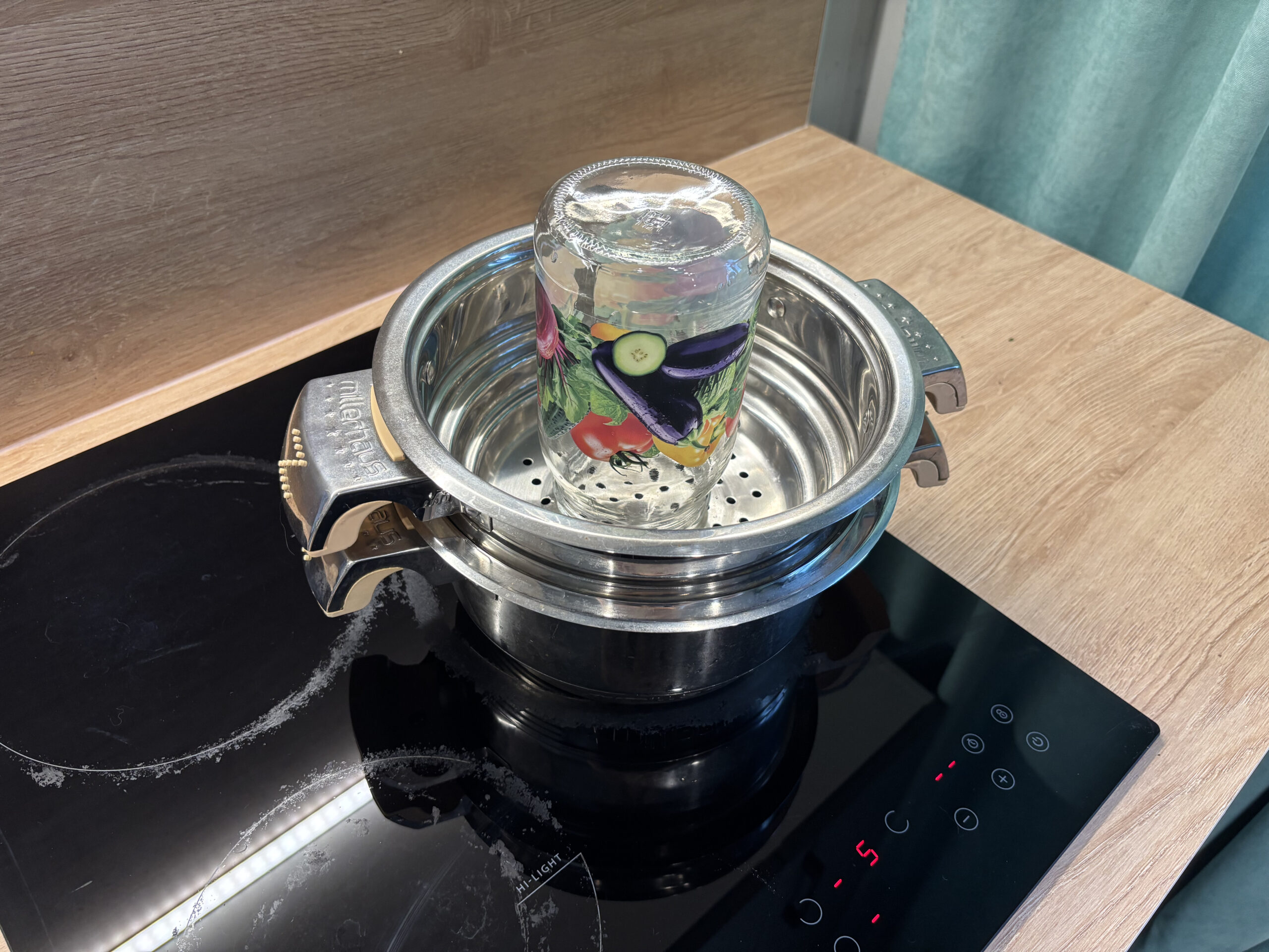 Кстати, мне повезло, что дома есть мантоварка: налила воду, поставила вставку с дырочками и сверху — банку.