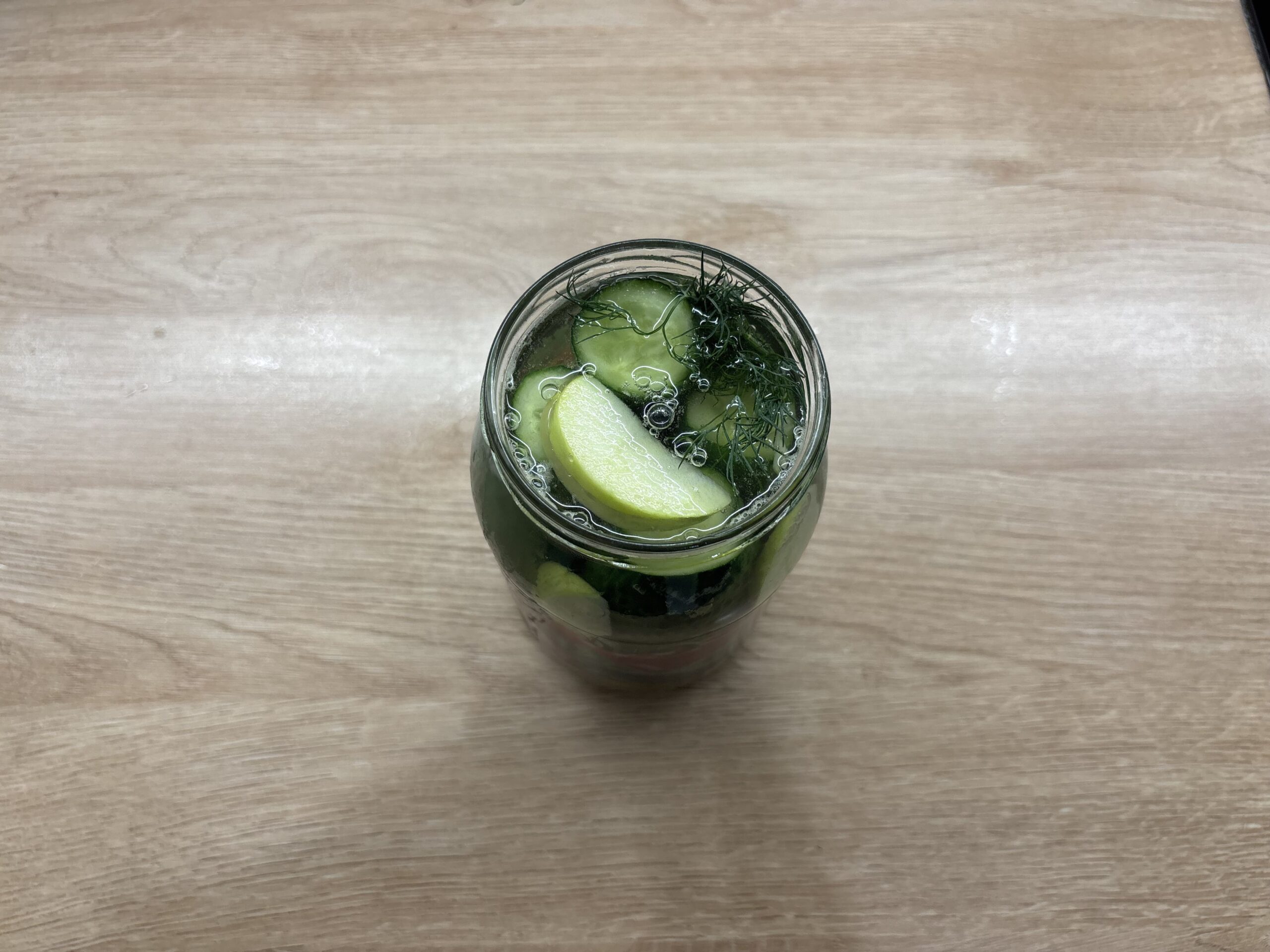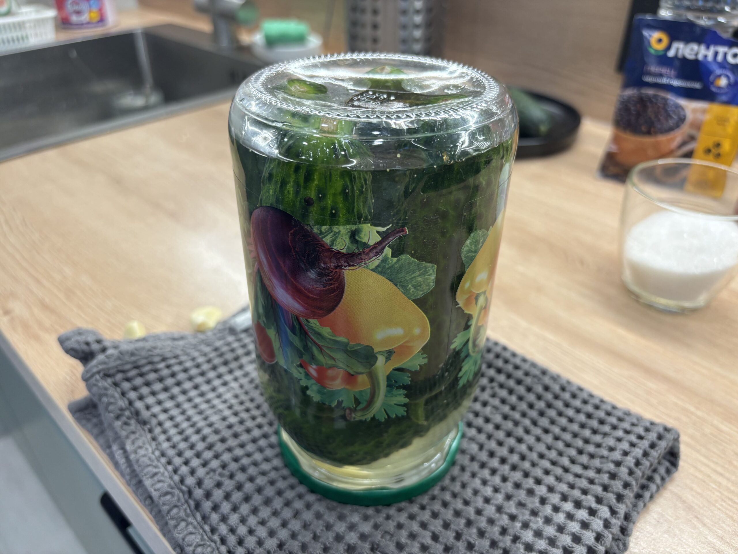 3. Огурцы утрамбовала плотно, чтобы не всплывали.