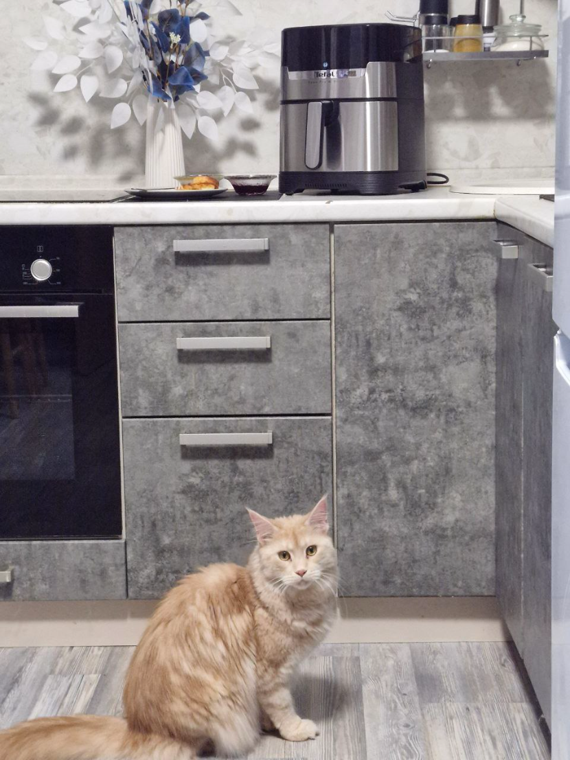 На фото может показаться, что он довольно внушительных размеров. Но, на самом же деле, не занимает много места и на небольшой рабочей поверхности помещается со своим собратом — грилем.