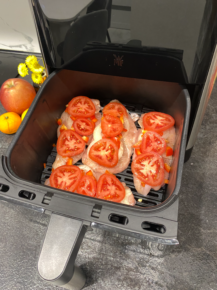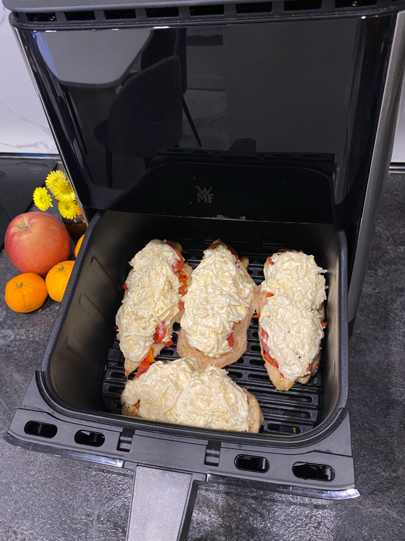 Для готовки в режиме аэрогриль можно в чашу сразу положить продукты и выбрать программу в меню. Тогда запекание будет с отличной корочкой и не нужно добавлять масло, если только по рецепту надо. Или сделать мясо в соусе, тогда вообще получается отлично! Рекомендую попробовать и томатный соус, и сливочный. Для курицы любой будет отличным.