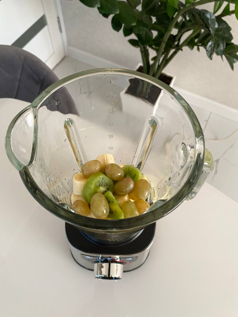 Детки тоже оценили возможности нового блендера. Сами закладывали свои любимые фрукты в чашу, и вот такой результат у нас получился.