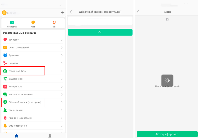 Функция «обратный звонок (прослушка)» позволяет подключиться к часам и прослушать, что происходит вокруг ребенка. Для этого необходимо ввести номер телефона, на который поступит входящий звонок с часов. Необходимо снять трубку и слушать. Качество передачи голоса хорошее, но другие шумы подавляются. По голосу можно определить, все ли впорядке у ребенка и в хорошей ли он компании. На часах ничего не происходит, ребенок не знает о всех манипуляциях со стороны родителя.