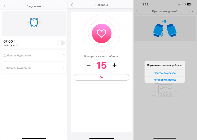 В разделе «будильник» можно настроить до трех оповещений с выбором дней недели. Это позволяет гибко подходить к настройке будильника, учитывая индивидуальные потребности ребенка.