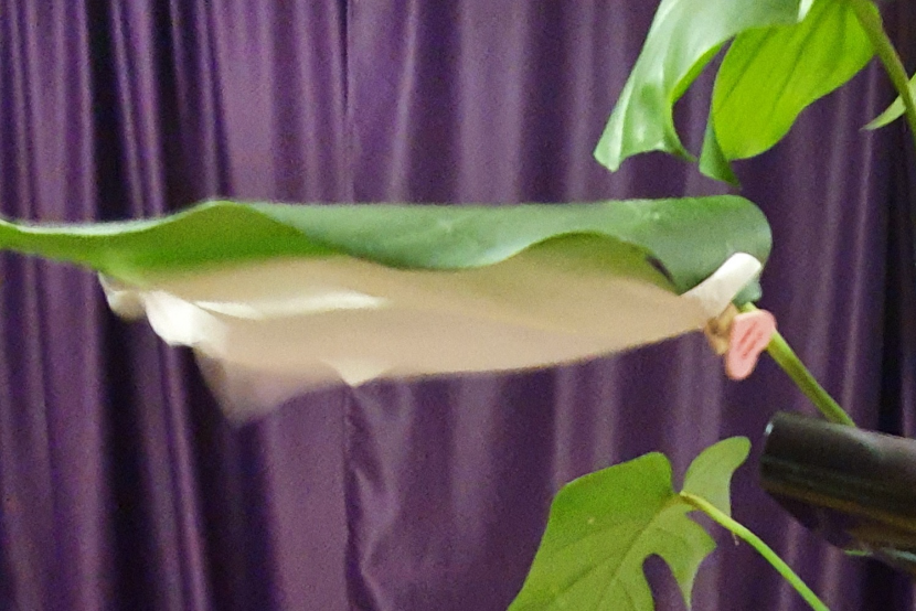 Салфетка была подвешена и свернута. Под действием воздуха расправилась и развевается.