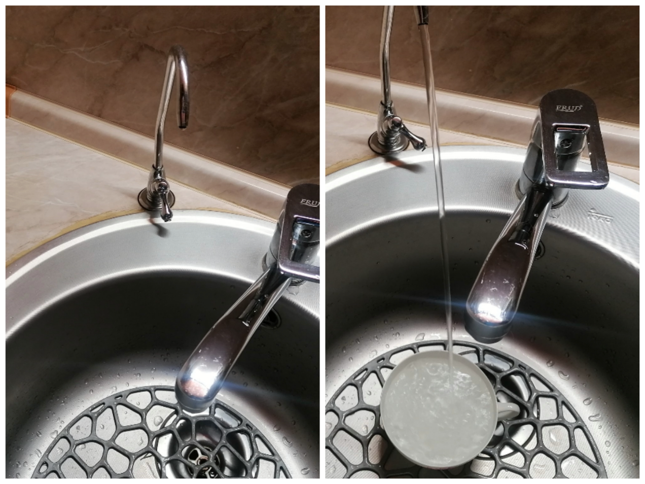Кран чистой воды открываем, только когда нужна очищенная вода для питья и готовки. Нефильтрованную воду мы используем для мытья рук и посуды.