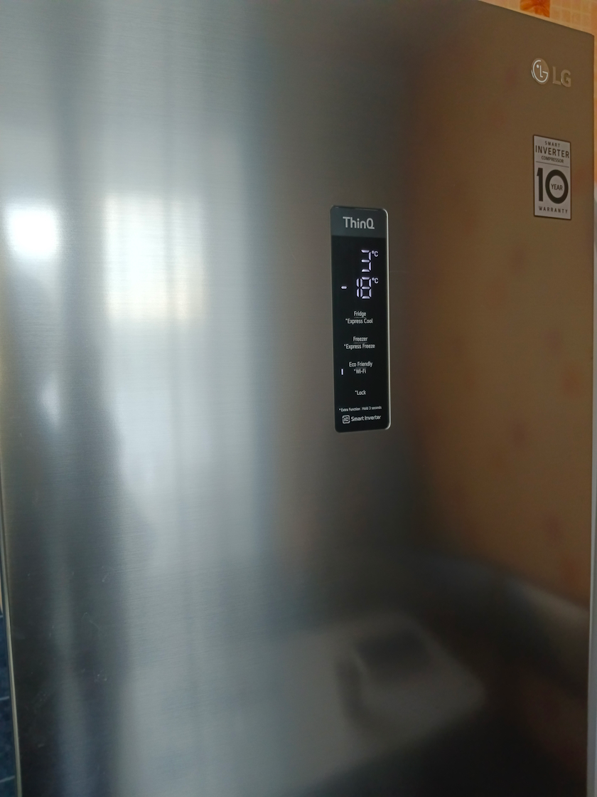 Если вы захотите с ним пообщаться, для этого есть внешний электронный экран, на котором вы сможете попросить его поставить вам нужную температуру общего отсека или морозильного. Но если вдруг вам понадобится быстро что-то охладить или заморозить, он и тут вам с радостью поможет, благодаря функциям быстрой заморозки и охлаждения.