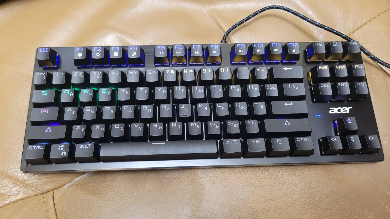 Клавиатура очень звонко щелкает, я бы сказал, близко по звуку к пишущей машинке прошлого века. Стоит учитывать, может раздражать окружающих. Есть механические свитчи куда глуше.