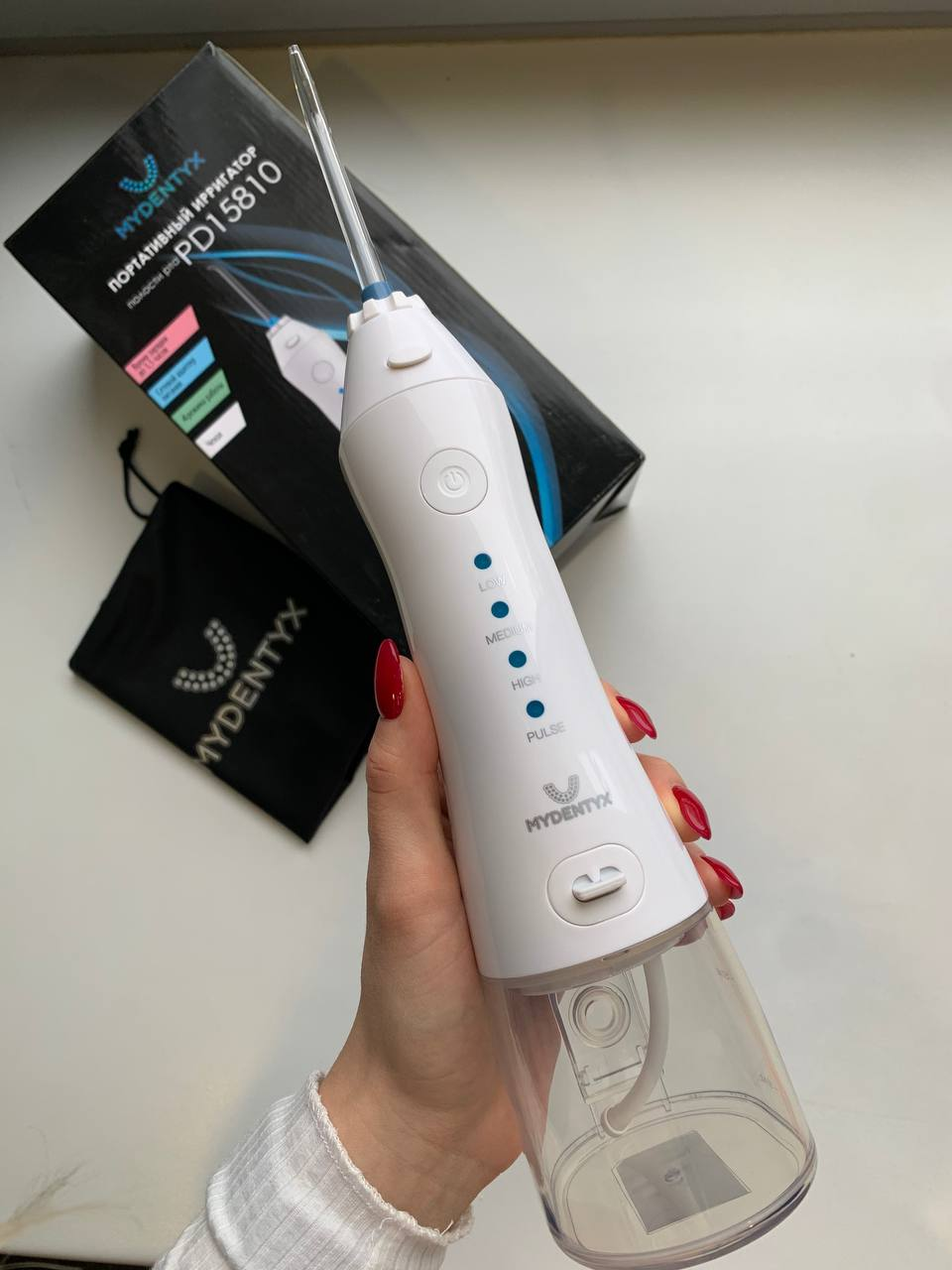 Обеспечить комплексный подход к заботе о гигиене полости рта от профилактики кариеса до поддержания здоровья десен поможет ирригатор MYDENTYX. Он обладает 4 режимами работы: мягкий для чувствительных десен, средний для ежедневной чистки, нормальный для тщательной очистки и импульсный для массажа. Прибором можно пользоваться даже в душе, поскольку он водонепроницаемый.