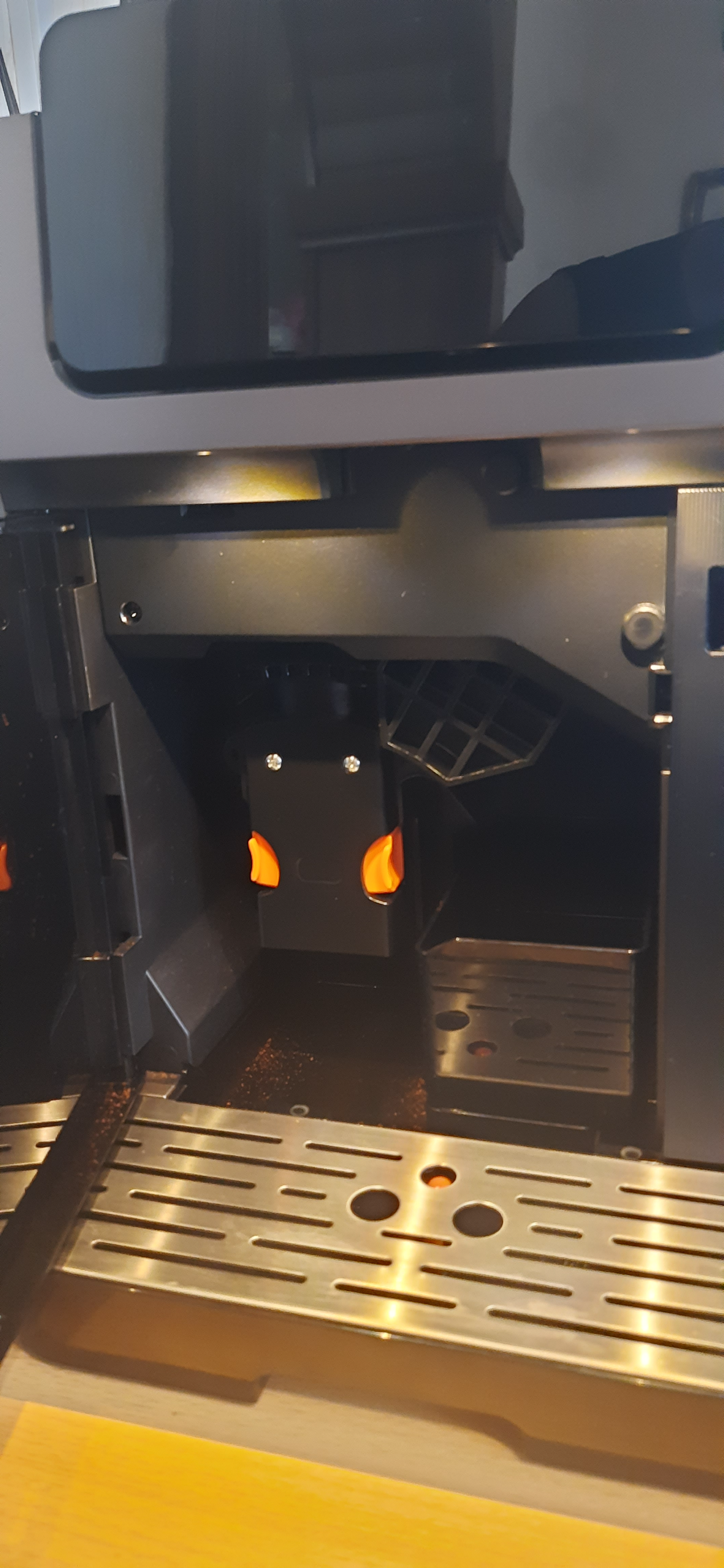 Присутствует немаловажная функция самоочистки прибора, как заполнение резервуара для использованного кофе или поддона для капель. При отключении происходит автоматическая промывка системы, при последующем включении также происходит промывка системы. Данную функцию можно отключить и самостоятельно следить за очисткой прибора. Для меня очистка прибора после изучения инструкции показалась изначально непонятной, что на самом деле оказалось наипростейшим действием. Открыла переднюю крышку и всё увидела, что от меня требуется сделать. О необходимости удаления накипи прибор сообщает самостоятельно соответствующей индикацией на дисплее, в комплекте 3 упаковки чистящего средства. Справится и ребёнок.