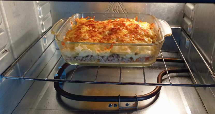 Потребляет небольшое количество электроэнергии. Всего 1500 Вт. Что очень важно в саду, так как входящее напряжение здесь небольшое. Но в то же время еда пропекается хорошо. Готовлю уже больше месяца. Пироги, пицца, картошка, мясо, курица — всё запекается идеально. Единственный минус в том, что у задней стенки еда запекается быстрее, чем у дверцы. Поэтому иногда приходится переворачивать противень.