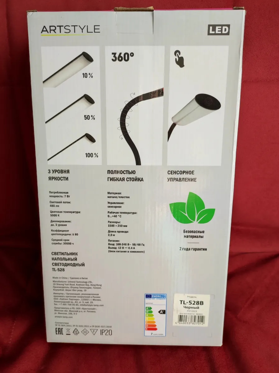 В упаковочной коробке он, конечно же, в разобранном виде, но с его сборкой справится и школьник: знай ввинчивай трубку в трубку, а уже собранную вертикальную часть в массивное основание. Верхняя часть торшера гибкая и это удобно: можно направить пучок света именно туда, где он необходим. Сама матрица имеет три режима яркости, диммирование ступенчатое. Очень понравилось сенсорное управление, нужно легко коснуться рукой плафона и торшер включён. Точно также он и выключается.