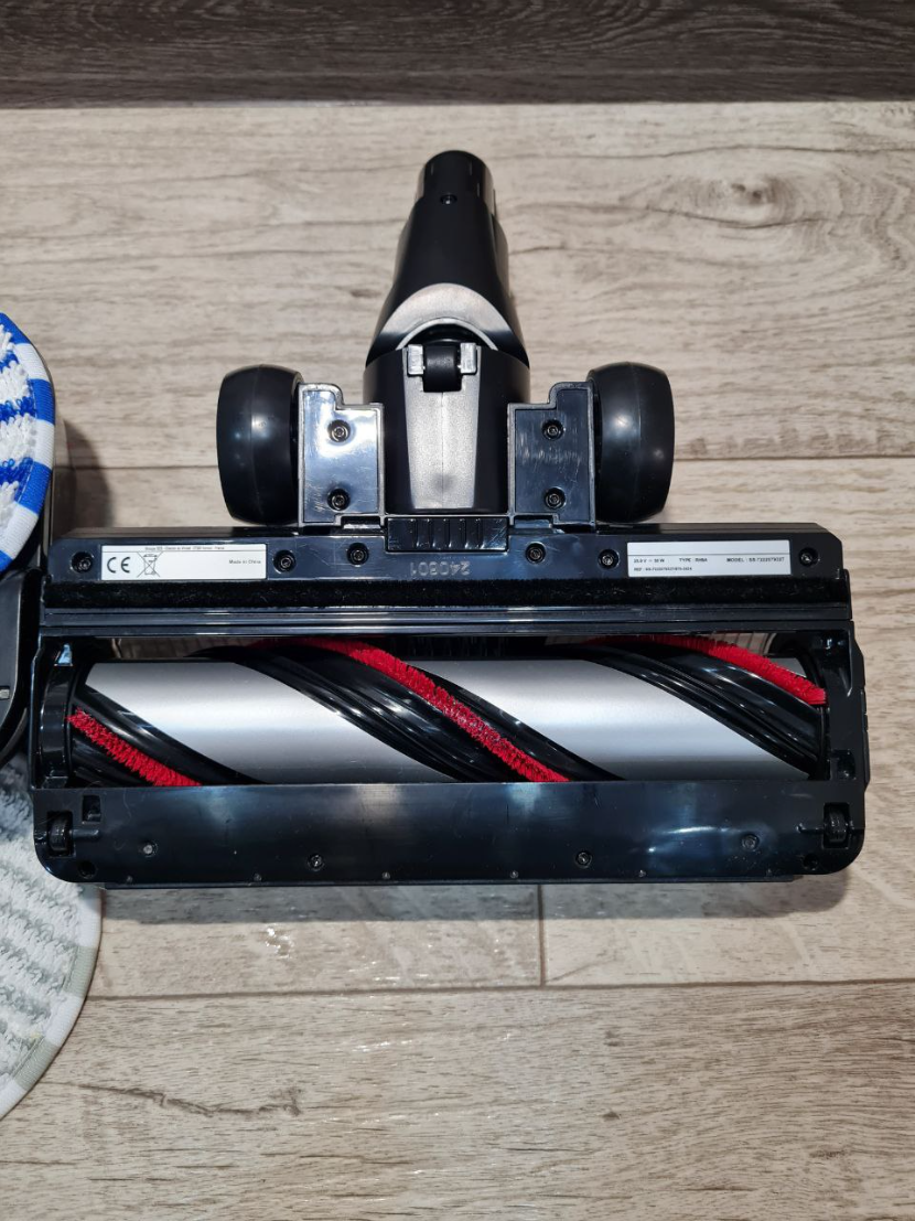 Вот она вся на фото. Это основная насадка с вращающимся валиком. Ох, как хорошо она на себя шерсть и волосы собирает. Затем в комплекте представлена щелевая насадка. Мне за кроватью ею удобно убираться, другая насадка туда просто не лезет. Есть насадка для мебели. Пользуюсь ей всегда. Ещё ей хорошо пылесосить занавески от пыли. На трубки пылесоса надеваются специальные щёточки с мягким ворсом. Это удобно и безопасно для уборки твёрдой мебели и подоконников. Нет риска их поцарапать. Ну и насадка для влажной уборки, которая помогает мыть пол и оттирать разные засохшие на полу пятна. В ней представлены два вида дисков разной жёсткости. При работе они крутятся и хорошо пол отмывают. Ещё в пылесосе есть запасной фильтр.