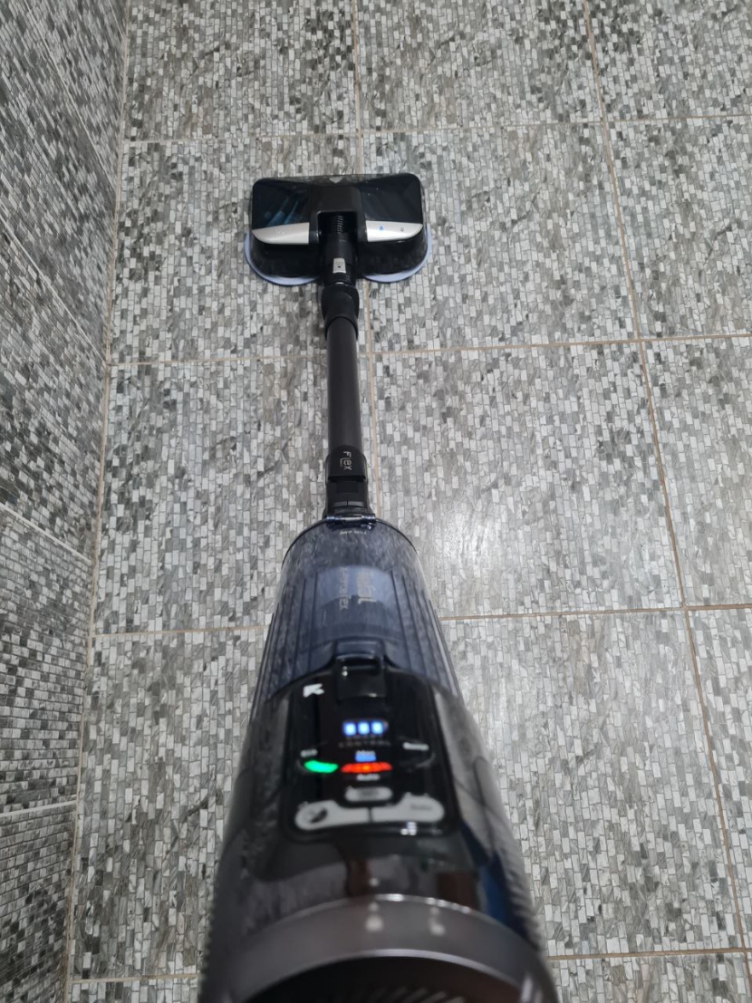 Насадка для влажной уборки себя показала очень достойно. В неё я заливаю воду, смачиваю первоначально круглые тряпочки тёплой водой, а потом вода самостоятельно поступает на них из резервуара и так проводится влажная уборка. За счёт вращающихся дисков пол ещё как бы полируется. У меня в доме везде фактурный линолеум и плитка в ванной и гостевом туалете. И то и другое покрытие моет отлично.