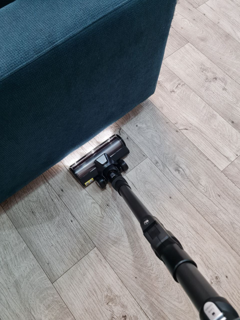 Уборка этим пылесосом очень комфортная. Вот кажется, что пол чистый, но насадка с подсветкой тебе покажет, действительно ли чисто в доме. Она просто идеально подсвечивает пыль, которую практически не видно на покрытии.