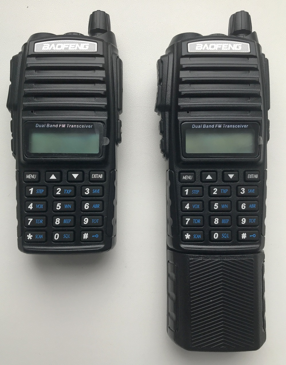 Так как радиостанция Baofeng UV-82 так же как и UV-5R двухдиапазонная, но в модели UV-5R эта функция была заложена только на уровне идеи и не была доведена до конца, требуя некоторых навыков использования. То уже в модели Baofeng UV-82 была реализована в полной мере и данная радиостанция первая получила свою уникальную черту, сдвоенную кнопку передачи сигнала «PTT». При нажатии на верхнюю часть «А» кнопки «PTT» включается передача на первой частоте, при нажатии на нижнюю часть «В» — на второй частоте. Это дает возможность работать сразу с двумя группами на разных частотах или использовать вторую частоту как резервную. И это стало именно ее фирменной фишкой среди всех остальных моделей.