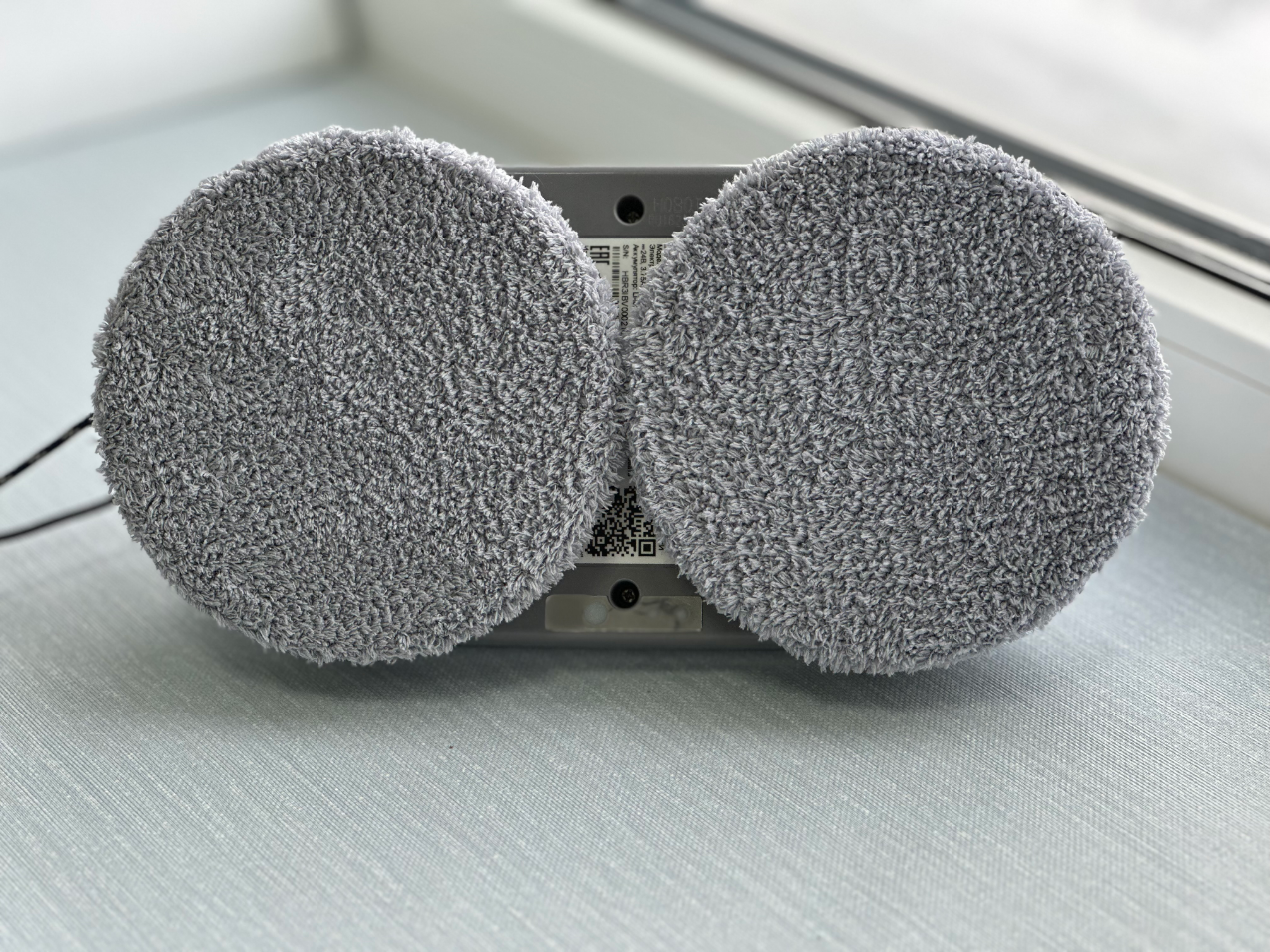 Чистящий блок представлен двумя вращающимися колесами, на которые крепятся кольца с надетыми салфетками из микрофибры.
