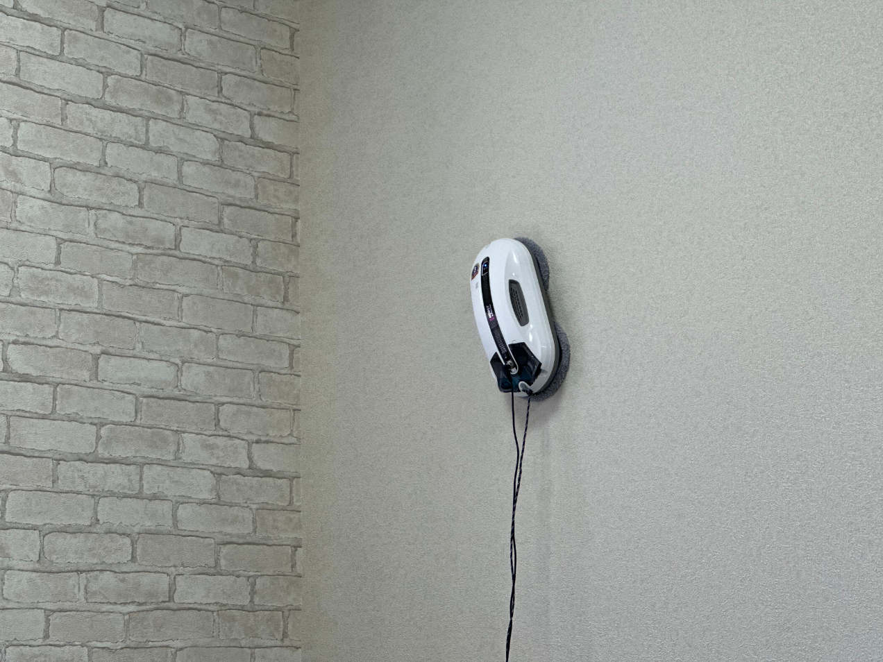 Согласно инструкции по эксплуатации, необходимо прочно закрепить робота внутри помещения страховочным шнуром с помощью удобного карабина.