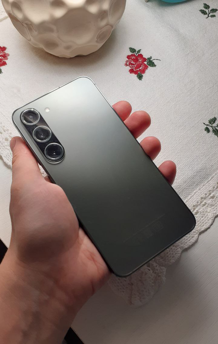 Обратите внимание, какой потрясающе зеленый цвет у моего малыша S23! Да, кстати, он малыш и поместится в маленькой сумочке и хорошо лежит в небольшой женской ладони. Я не люблю лопатники, которые надо держать двумя руками, чтобы просто позвонить кому-то. Так вот! Зеленая расцветка выглядит свежо и стильно, а тонкий и легкий корпус делает его удобным для ежедневного использования. Он яркий, стильный и просто притягивает к себе взгляды. Кроме того, его ультратонкий корпус идеально лежит в руке и не скользит. Это особенно важно для меня, потому что я всегда занята и не хочу беспокоиться о случайном падении смартфона.