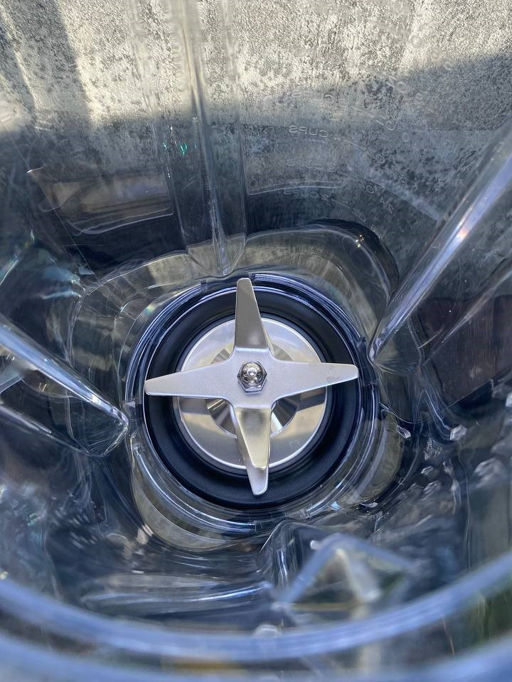 Чаша блендера большого объёма. Возможно приготовить коктейли сразу на несколько человек, когда приходят гости. У родителей жены блендер со стеклянной чашей, и мы несколько раз пользовались им. Стекло тяжёлое, особенно для жены, и постоянно переживаешь, как бы его не разбить при мытье или использовании. В нашем блендере чаша заметно легче, даже когда она полная, не нужно много сил, чтобы перенести её или разлить смузи или коктейли по стаканам. За несколько недель использования на стенках чаши я не увидел царапин или потёртостей — она выглядит абсолютно как новая. Ножи расположены достаточно низко и захватывают продукты с самого низа чаши. Несколько раз смешивал буквально на один стакан, примерно 150−200 мл, — блендер справился без проблем, ничего на стенках не остаётся. Жена внимания не обратила, а мне понравилось, что соединение ножей и двигателя — металл. На мой взгляд, это говорит о надёжности и долговечности блендера.