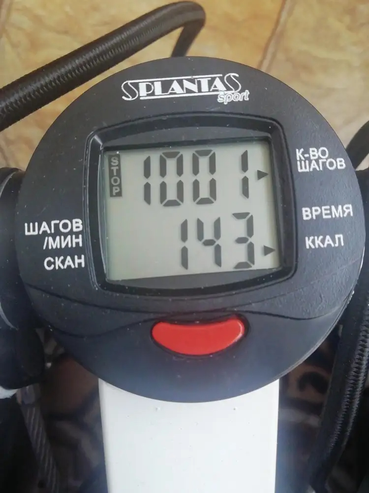 Заказал, оплатил, а после работы забежал и забрал. Открыв коробку, увидел, что степпер в сборе и готов к работе. Начал аккуратно топтаться на нём, постепенно увеличивая темп. Устал с непривычки уже минут через 15. Нагрузка, конечно, не такая, как при ходьбе по лестнице вверх, но вполне ощутимая. Тем не менее, походил на нём и на следующий день. И дошел до часа без перерывов уже к концу первой недели. Дисплей степпера работает в автоматическом режиме, попеременно отображая то время тренировки, то количество шагов в минуту, то количество сожжённых килокалорий. А ещё у него есть регулятор нагрузки, чисто механическая конструкция: если начать закручивать здоровую гайку-барашек, расположенную на вертикальной основе под дисплеем, то можно дозированно увеличить усилие продавливания вниз на педалях. Но даже при максимальной нагрузке вряд ли удастся вспотеть: всё-таки этот степпер рассчитан на достаточно лёгкую аэробную тренировку, скорее даже разминку, что, впрочем, никак не умаляет его достоинств.