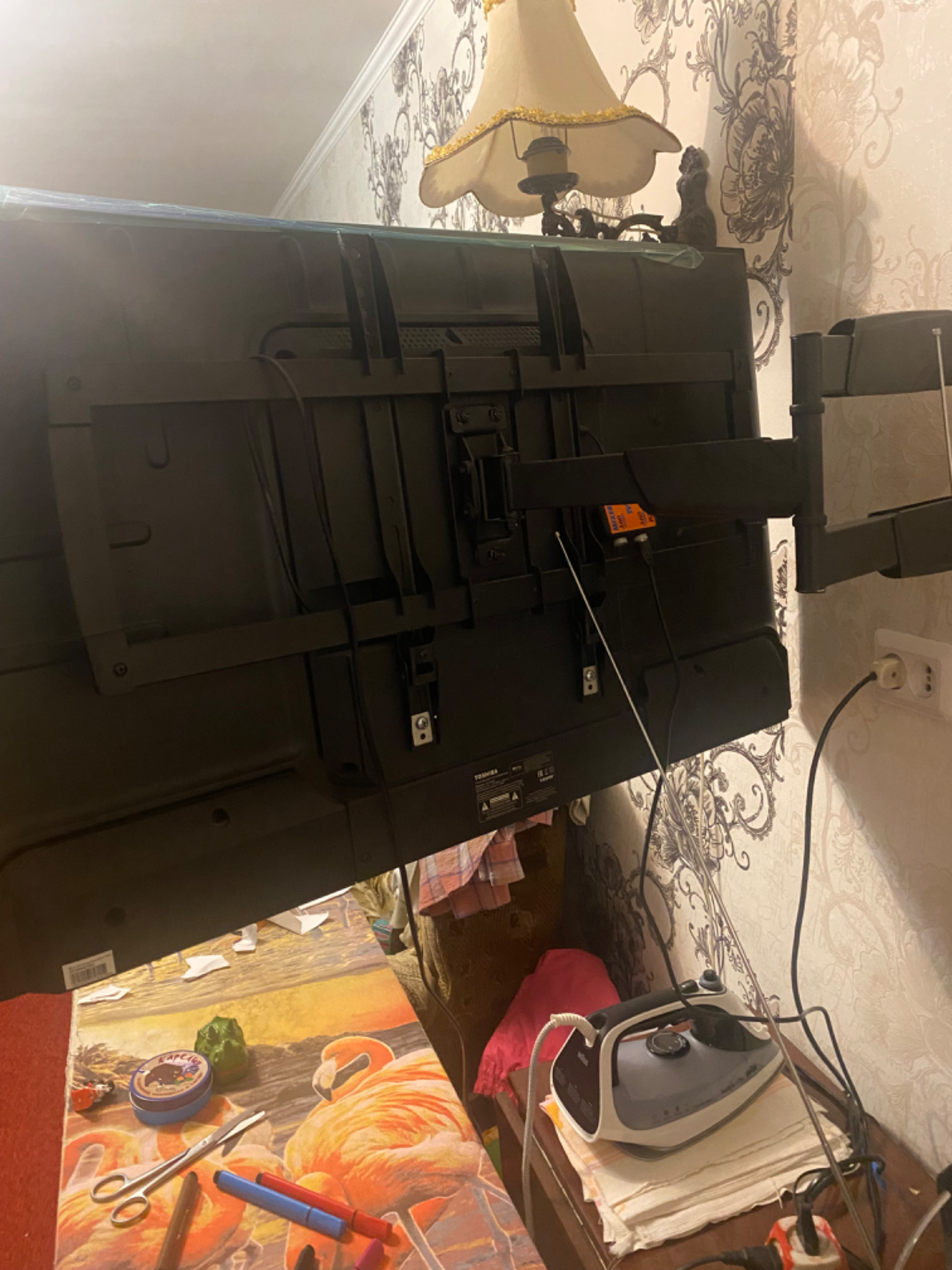 Как я писал раньше, дополнительно приобрели хороший кронштейн за 4000 рублей, без проблем подсоединил к стене, очень удобно и надежно!