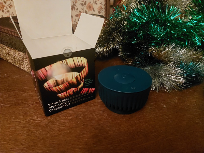 Хорошая умная колонка. Вообще, она имеет несколько вариантов расцветки — белый, синий, розовый, желтый. Свой выбор остановил на синем или синий нептун, как она называется на сайте. Понравилась упаковка. Яркая коробка, заманчивая. На коробке уже есть подсказочки, как можно использовать умную колонку.