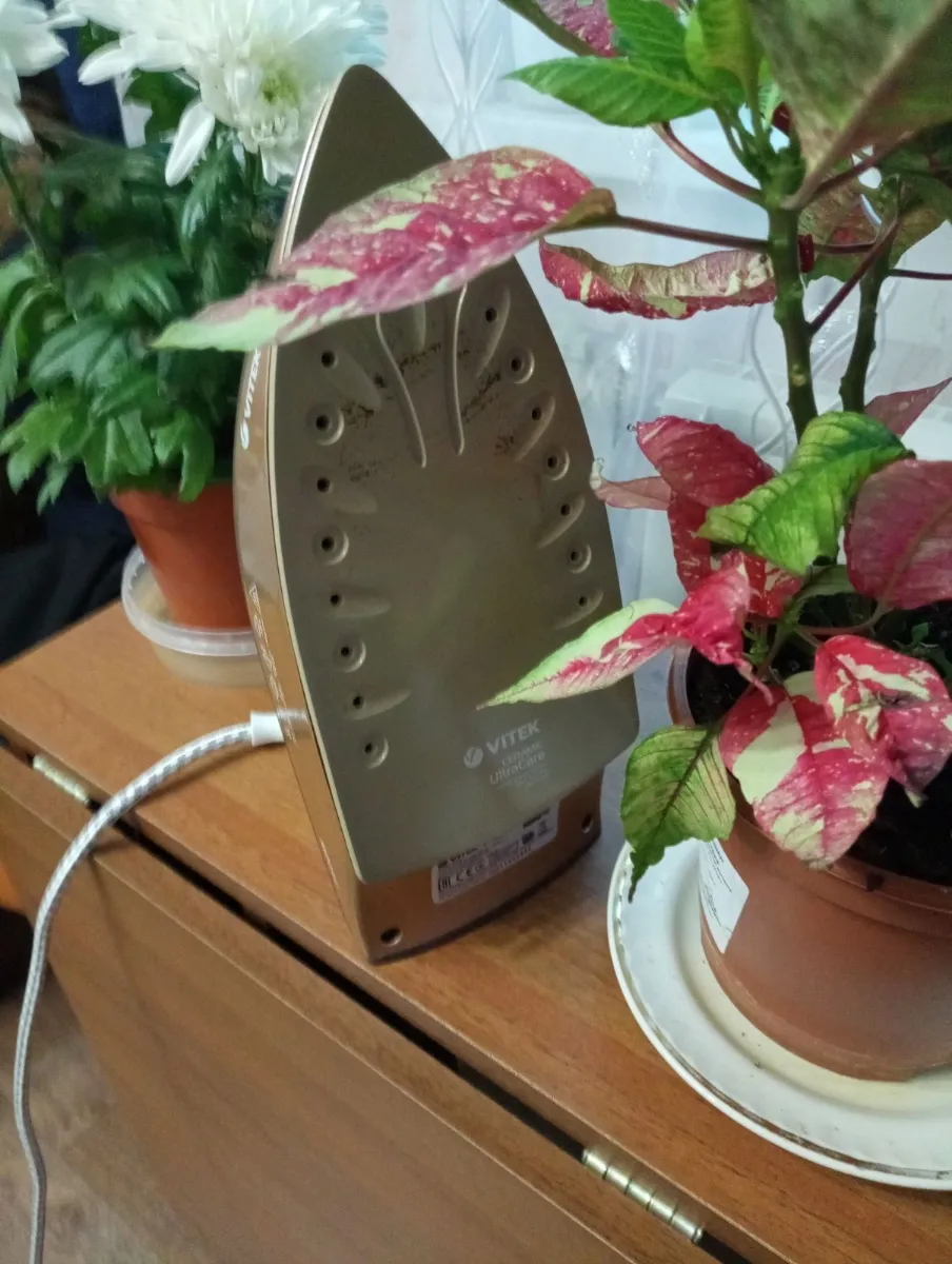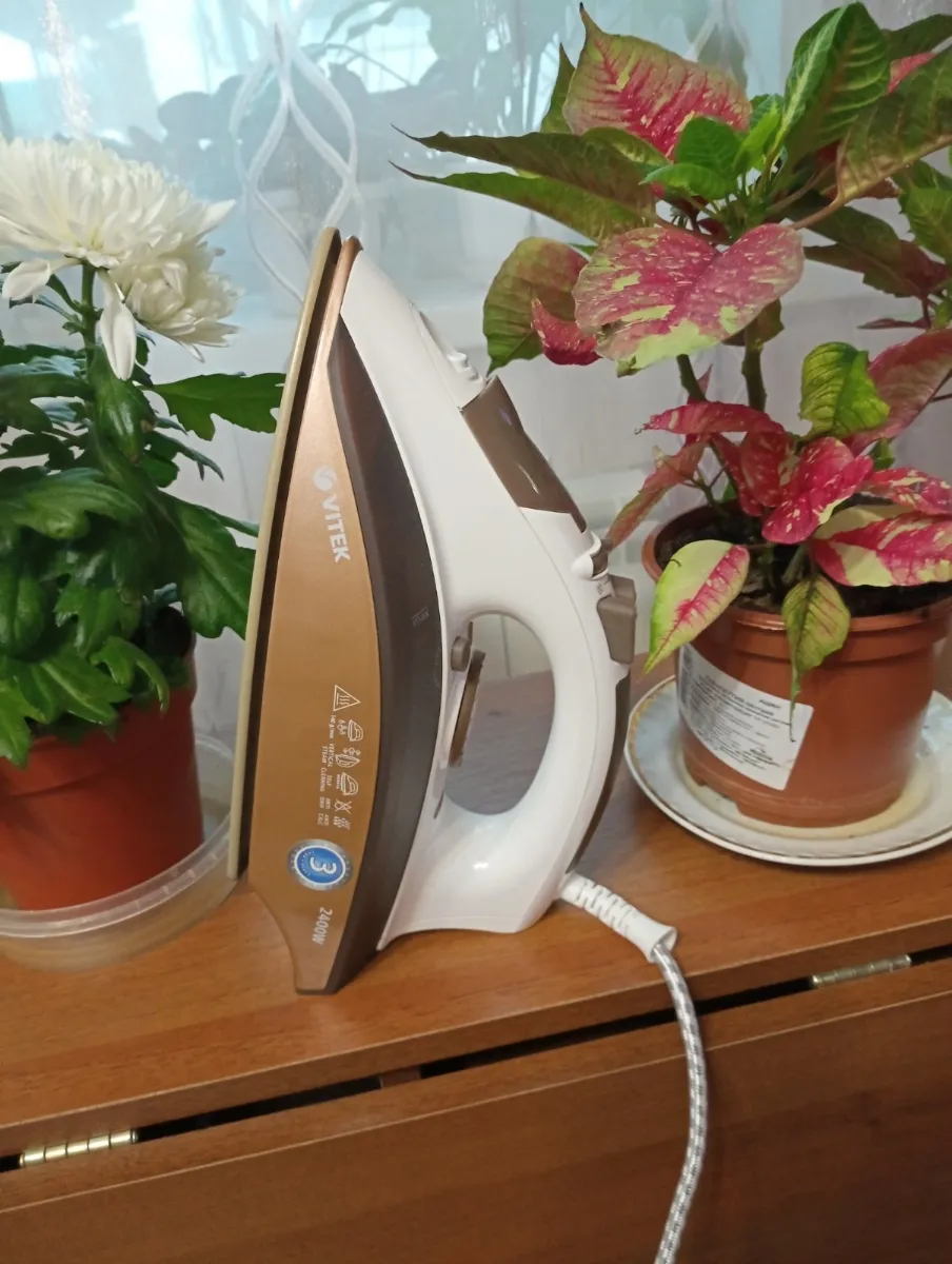 Проспал вчера, поэтому и торопился утром на работу: убегая с кухни с куском бутерброда во рту, зацепил кабель утюга. Он, естественно, вдребезги! Ничего не поделаешь, утюг необходимейшая вещь в хозяйстве. Забежал вечером в М.Видео, нужна была простая бюджетная модель, без переплаты за бренд, с антипригарным покрытием и функцией отпаривания. Увидел несколько вариантов в пределах двух тысяч рублей и купил Vitek коричневого оттенка, так как и кухня у нас примерно в тех же тонах.