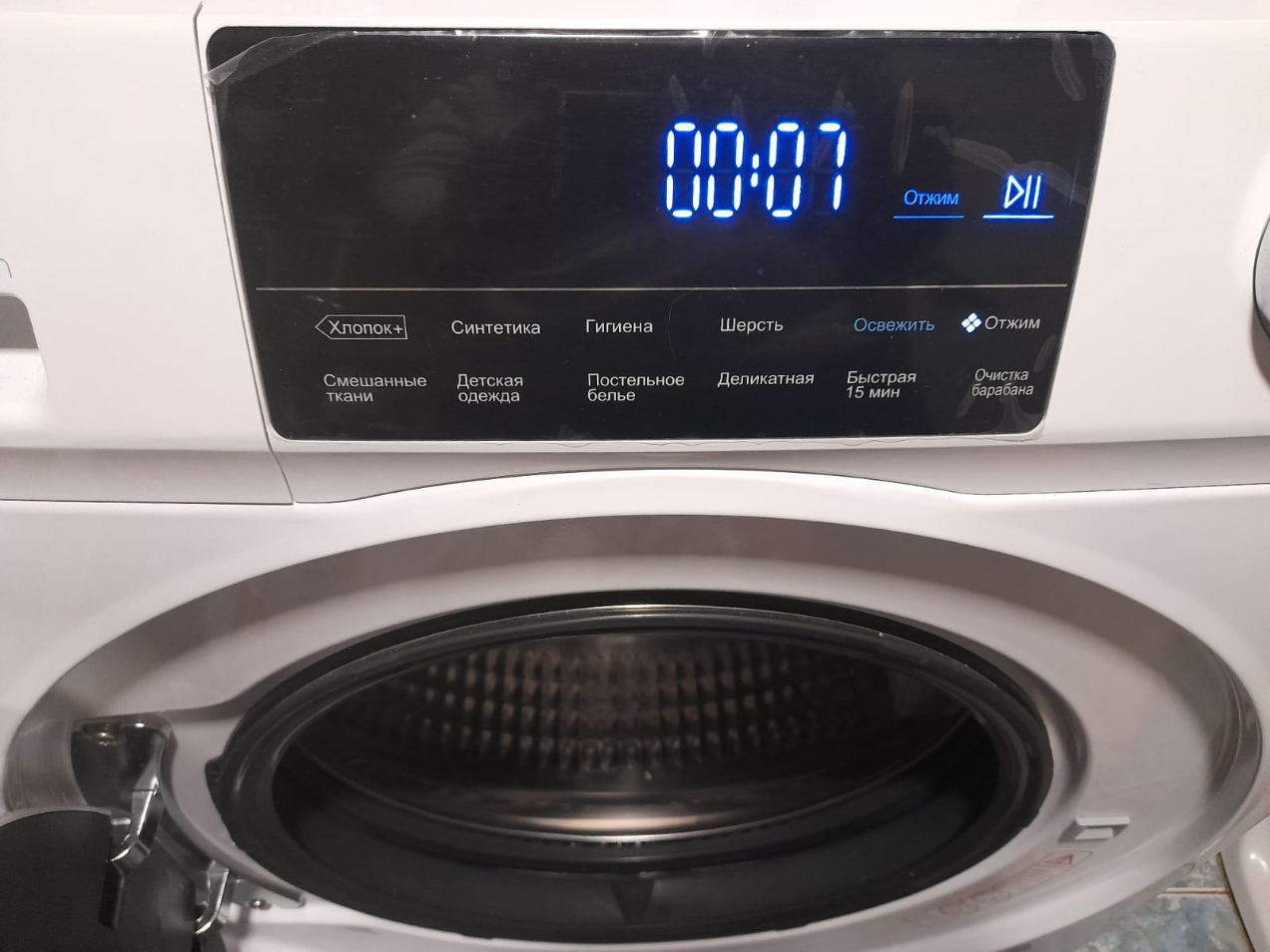 С красивым цветным дисплеем машинка этой же фирмы стоила дороже, но нам это нужно не было. Вообще машинок этой фирмы огромное количество, разная мощность, объем загрузки. В нашей есть функция пара в некоторых режимах, пока не особо поняла, сильно ли она нужна, но приятно. Пользовалась только раз пока.