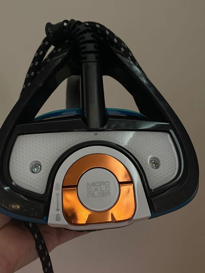 Уникальная система фильтрации поможет пожить утюгу долгую жизнь. Фильтр не позволяет появиться на ткани белому инею кальцинатов. Он легко вынимается и чистится. А расположенная на ручке кнопка напомнит о необходимости его чистки. За первый месяц использования там собралось достаточное количество частиц накипи, похожего на песок. Можно смело делать вывод, что фильтр действительно работает, и мочекаменная болезнь утюгу не страшна.