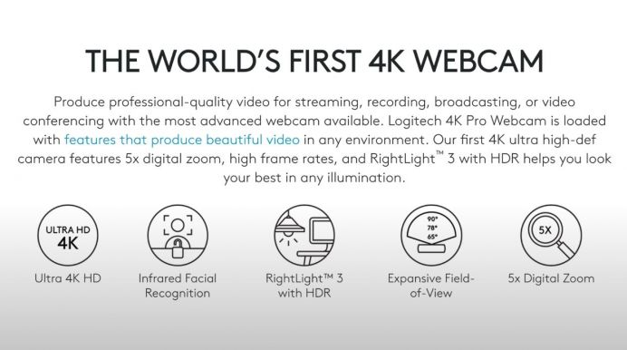 С технической точки зрения до 4K-формата другие производители пока не добрались. Logitech Brio 4K пока остаётся здесь в полном одиночестве. Говоря проще если, то 4K — это количество элементов, которые формируют изображение. Чем их больше, тем более чёткую и подробную картинку в итоге мы можем видеть. Обычный стандарт изображения FullHD имеет разрешение (количество элементов) в 1920 на 1080 точек/пикселей, а вот 4K уже — 3840 на 2160 точек. Как говорится — разница очевидна!