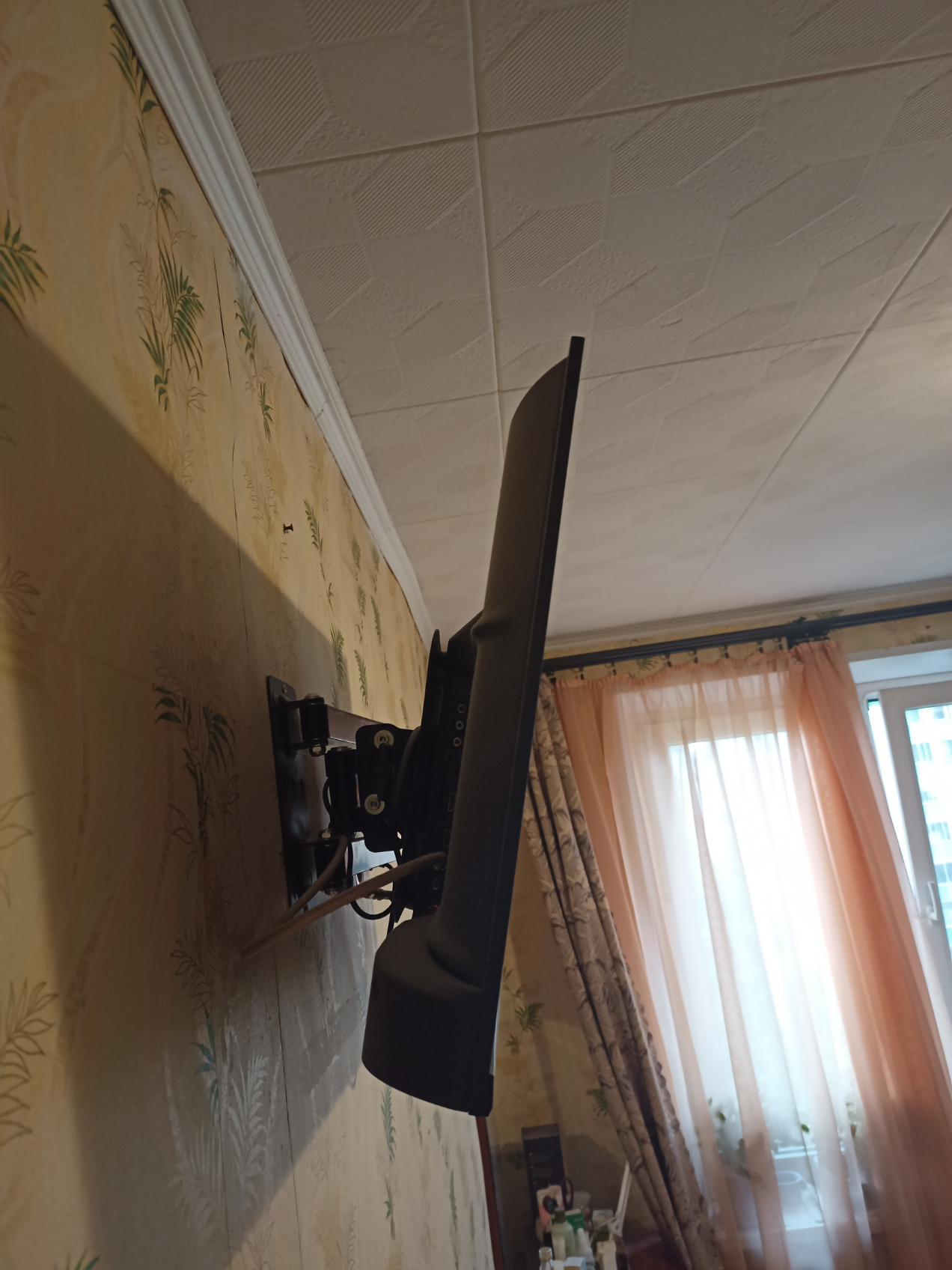 Сделав заказ в интернет магазине и придя за долгожданной покупкой в пункт выдачи заказов, я был немало удивлен небольшим весом коробки, при вполне нормальных габаритах, что позволило своим ходом, без особых трудов доставить его от Славянского бульвара до Печатников. Дома телевизор был извлечен наружу и детально рассмотрен. Приятно радовала глаз строгость форм и антрацитово черная расцветка. И вот настал момент его подключения и установки. Штатные ножки к телевизору мне показались очень хлипенькие, но для крепления на стену это было не принципиально. К моему удивлению выяснилось, что винты для того, чтобы закрепить телевизор за заднюю панель, в комплект не входят.