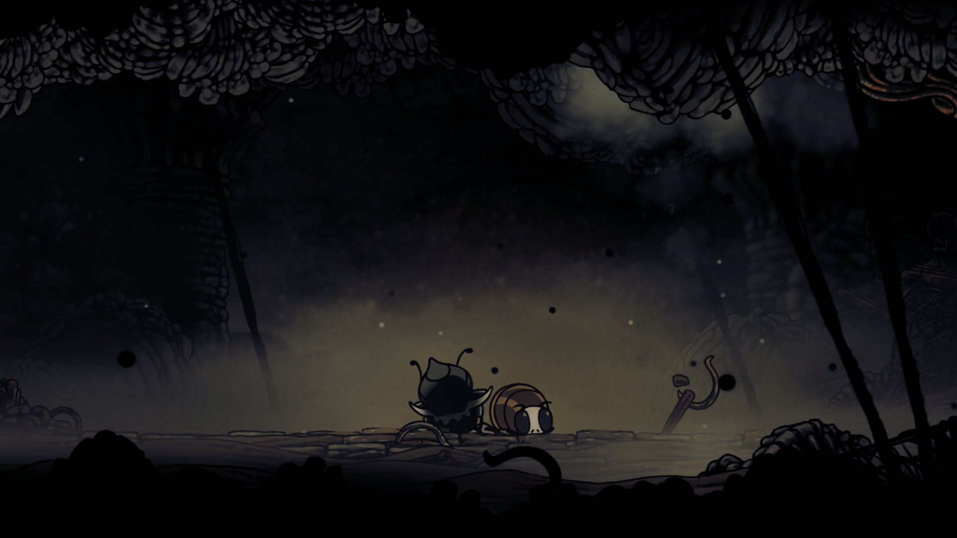 Дуэт в тесной зале: сначала движутся синхронно, позже расходятся и ускоряются, а после гибели одного второй «срывается», но быстро добивается под давлением агрессивных атак Хорнет. В целом, босс несложный, поскольку все его движения легко предугадать.
