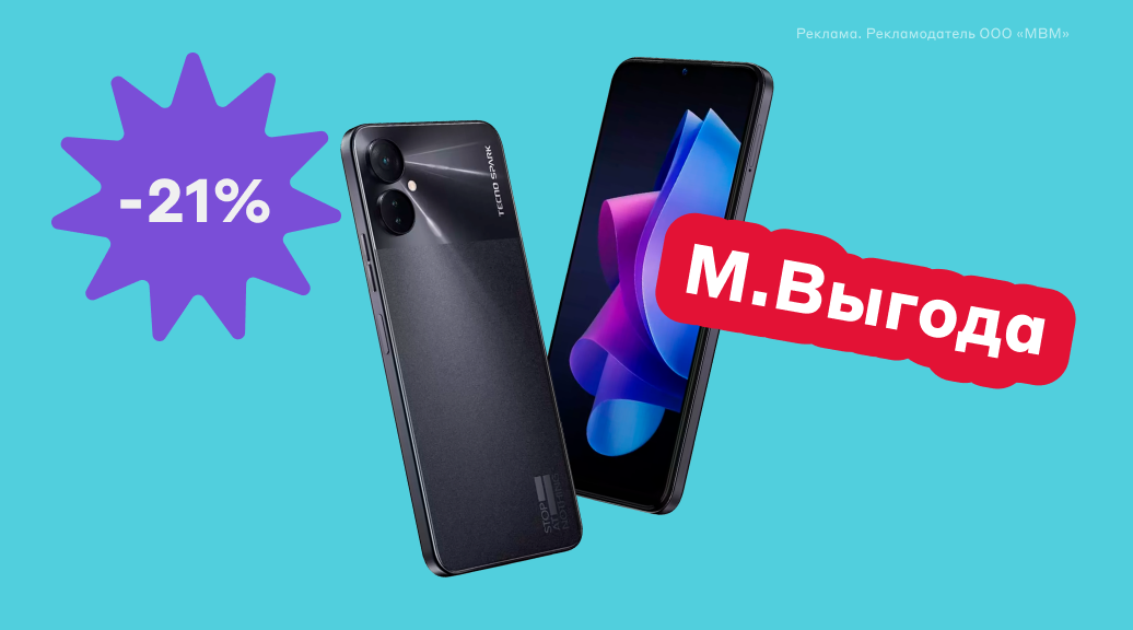 М.Выгода на этой неделе: смартфон Tecno Spark 9 Pro со скидкой 21%