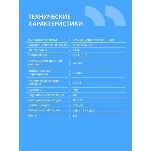 • Тип аккумулятора:свинцово-кислотный
