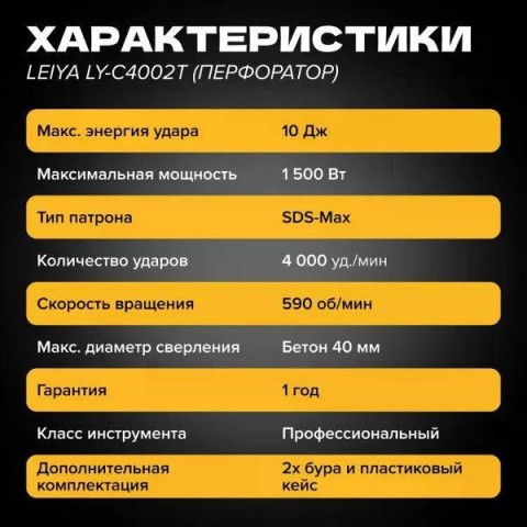 • Энергия удара:10  Дж