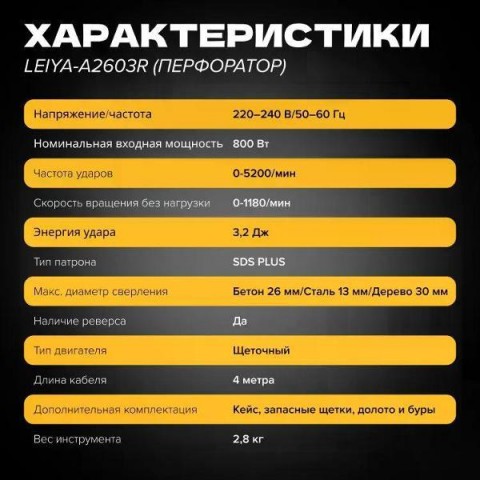 • Энергия удара:2.8  Дж