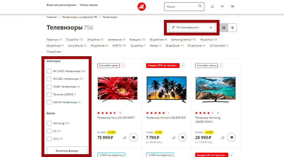 Подбор по параметрам позволяет ограничить список товаров только теми, которые соответствуют указанным вами характеристикам. Чтобы найти нужный товар по параметрам, используйте фильтры в левой части при просмотре товаров или воспользуйтесь сортировкой в правой части. Чтобы сбросить параметры и начать поиск заново, воспользуйтесь кнопкой «Очистить фильтр» в левой части под параметрами фильтрации.