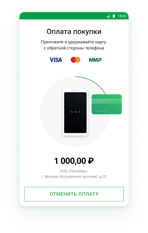 Оплата пластиковой картой при получении заказа через мобильное приложение «Сбербанк TapOnPhone»