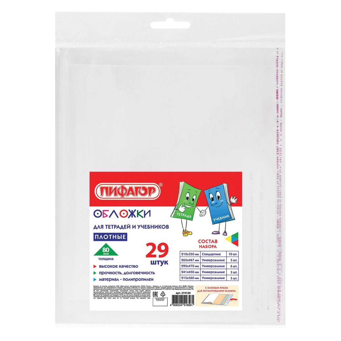 Обложка для книги Пифагор ПП д/тетр и уч 29шт 80мкм кл.край