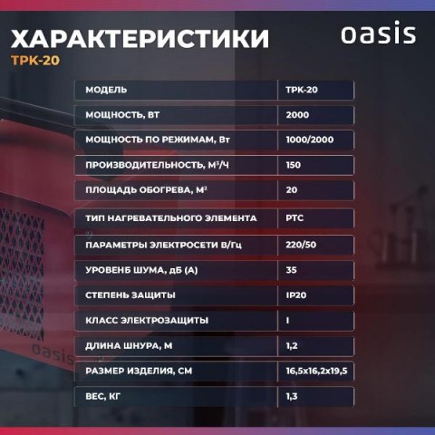 • Рекомендуемая площадь (высота 2.6 м):до 50 кв. м