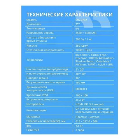 • Экран:27"/2560x1440 Пикс