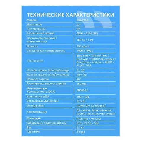 • Экран:27"/3840x2160 Пикс